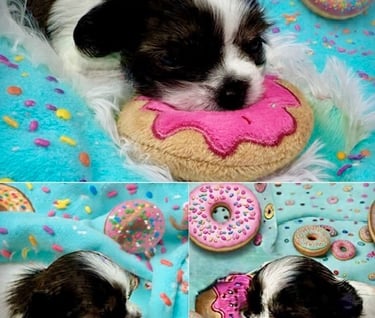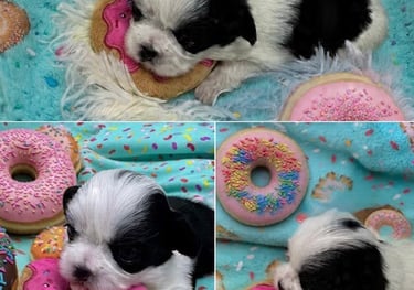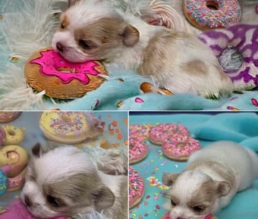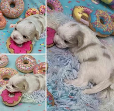 Opal and Dunkin blessed us with 3 gorgeous girls and 2 bouncing boys on 9/2/25! These delicious "Donuts" are 3 weeks old. Who wants some sugar from these sweet Dunkin "Munchkins"?